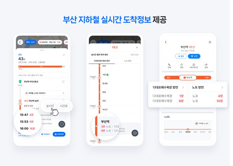 네이버는 그동안 서울·경기·인천 등 수도권 지역에 제공했던 실시간 지하철 정보 서비스를 부산 지역으로 확대, 부산도시철도의 실시간 열차 위치와 다음 열차 도착 시간 등 운행 현황을 정확하게 제공하게 됐다고 설명했습니다.
