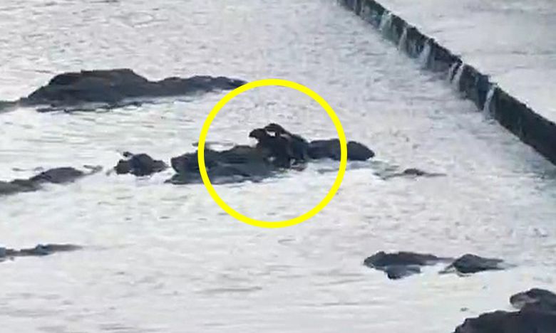 지난달 23일 태화강 상류인 울주군 언양읍 구수교 인근에서 발견된 수달 2마리. 송인귀씨 제공
