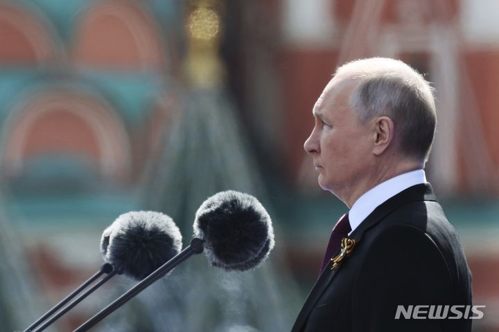 [모스크바=AP/뉴시스] 블라디미르 푸틴 러시아 대통령은 전승절 80주년 기념행사를 계기로 7~10일(현지 시간) 참석 정상들과 15차례 이상 연쇄 정상회담을 개최한다. 사진은 2023년 5월9일 78주년 전승절 기념행사에서 연설하고 있는 모습. 2025.05.08.