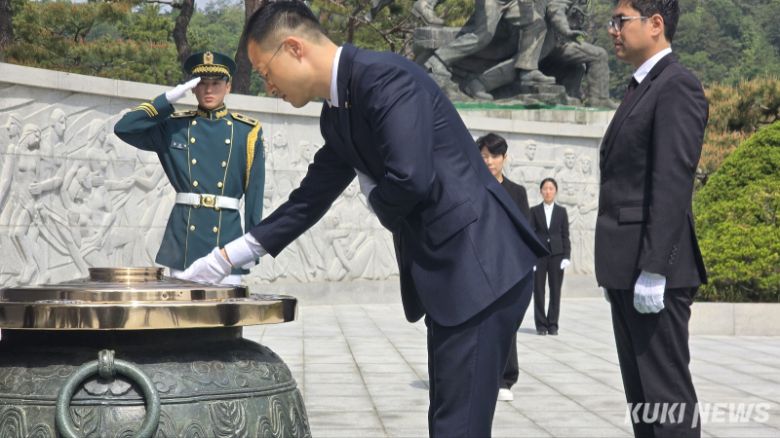 김상욱 무소속 의원이 8일 굴립상욱 무소속 의원이 8일 국립서울현충원에서 참배 후 분향을 진행하고 있다. 임현범 기자