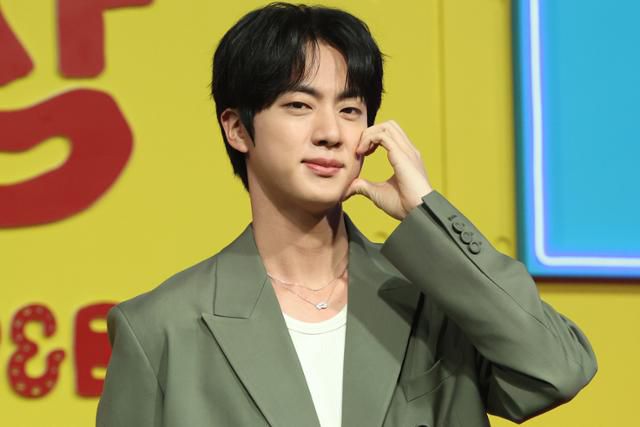 그룹 방탄소년단(BTS)의 진이 지난달 15일 넷플릭스 예능 대환장 기안장 제작발표회에서 포즈를 취하고 있다. 연합뉴스 |