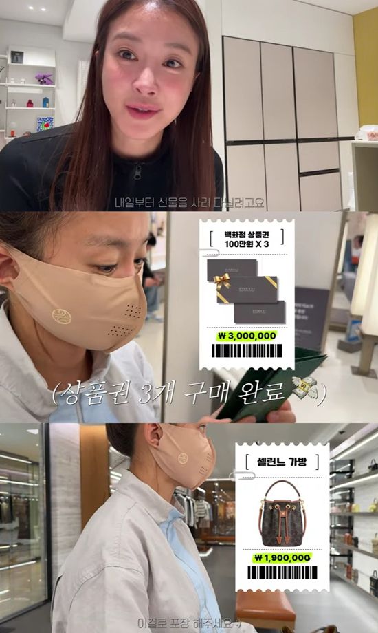 먼저 백화점으로 향한 이시영은 100만원권 상품권을 3장 구매했다. 이 밖에도 각각 190만원, 300만원 명품백과 153만원 명품 신발, 매니저에게 줄 92만원 명품 지갑까지 플렉스했다.