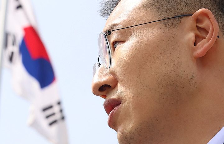 김상욱 의원이 현충원에서 참배 후 기자회견 하는 모습 |