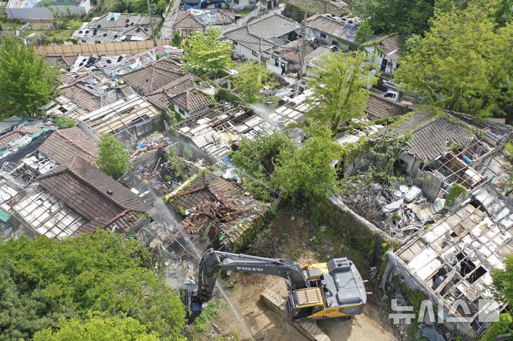 [서울=뉴시스] 김진아 기자 = 8일 서울 노원구 중계본동 마지막 달동네 '백사마을' 철거가 시작됐다. 노원구 중계본동 30-3번지 일대는 최고 35층 26동 3178가구 아파트 단지로 재개발한다. 이곳은 1960년대 후반 서울 도심 개발로 밀려난 철거민들이 '산 104번지'에 집단 이주하면서 형성돼 백사마을로 불린다. 2025.05.08. bluesoda@newsis.com |