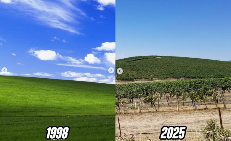 윈도우XP의 배경화면 이미지로 쓰이는 미국 캘리포니아주 나파밸리의 1998년과 2025년 현재 모습. <출처=인스타그램 인사이드히스토리> |