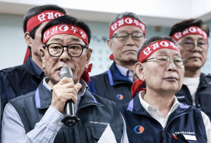 서종수 전국자동차노동조합연맹 위원장이 8일 서울 서초구 전국자동차노동조합연맹에서 열린 전국자동차노동조합연맹 대표자 회의를 마친 뒤 회의결과를 발표하고 있다./사진=뉴시스 |