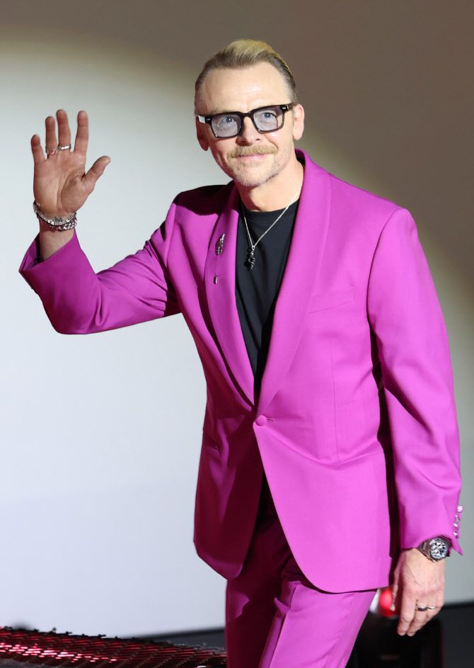 배우 사이먼 페그가 8일 오후 서울 송파구 올림픽로 롯데시네마 월드타워점에서 열린 영화 ‘미션 임파서블: 파이널 레코닝’ 기자간담회에 참석해 미소를 짓고 있다.