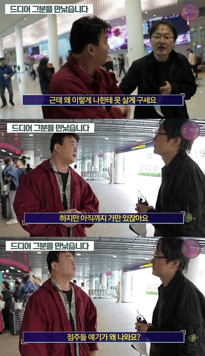 김 PD가 마스크를 벗으며 "'트루맛쇼' 김재환 감독이다"라고 했고, 백종원은 "아. 안녕하세요. 근데 왜 이렇게 나한테 못살게 구냐"고 했다.