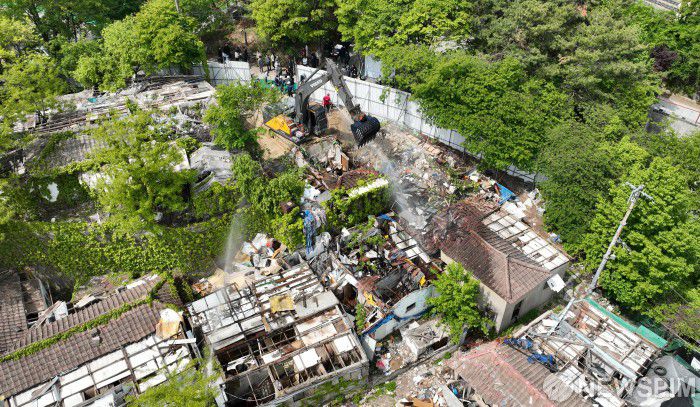 [서울=뉴스핌] 양윤모 기자 = 8일 오전 서울시 내 마지막 달동네로 불리며 오랜 시간 도시재생과 재개발 논의가 이어져 왔던 서울 노원구 백사마을이 ‘백사마을 건축물 해체 착공식’을 갖고 철거되고 있다. 2025년 12월 착공을 거쳐 2028년 말 완공을 목표로 하고 있다. [사진=노원구청] 2025.05.08 yym58@newspim.com