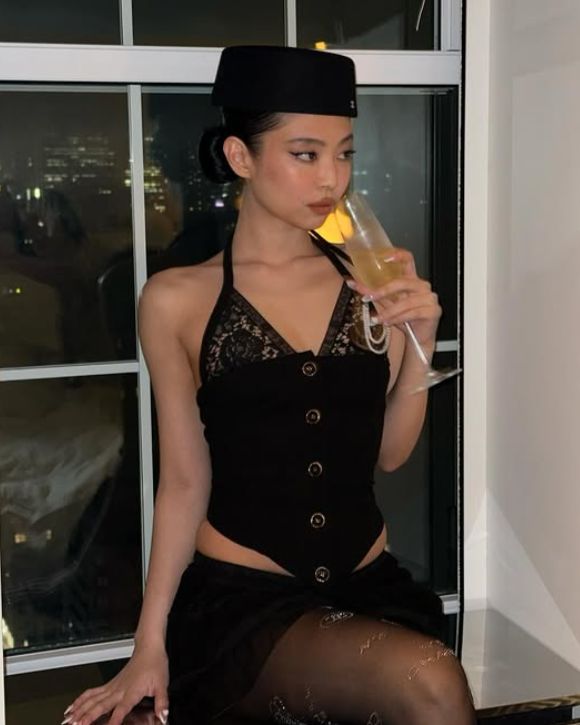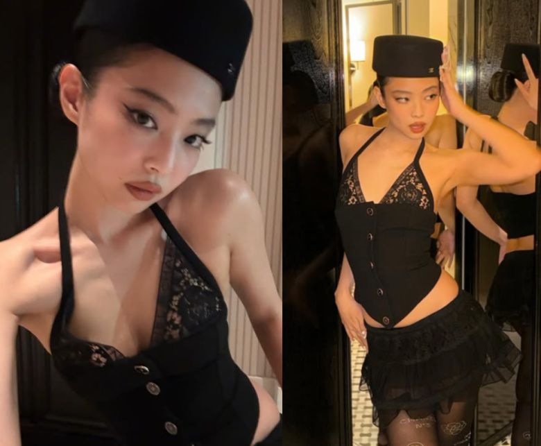 공개된 사진 속 제니는 시스루로 된 홀터넥 상의와 미니스커트, 독특한 보터 햇(boater hat)으로 독보적인 올 블랙 패션을 완성해 눈길을 끈다. 특히 샤넬 로고가 반짝거리는 스타킹까지 착용해 '인간 샤넬'의 면모를 다시 한번 자랑했다.