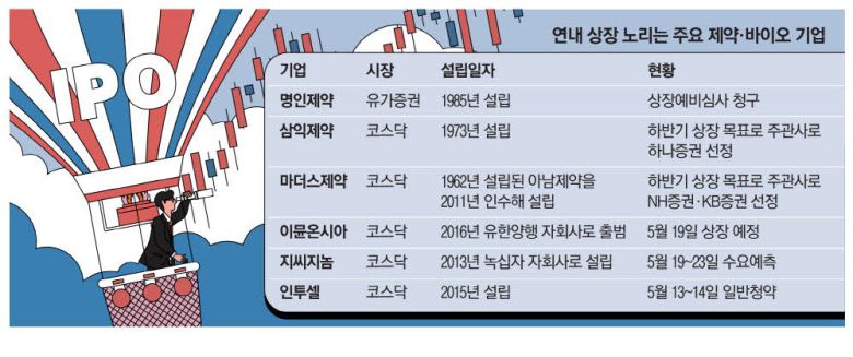 그 밖에 상반기에는 대형 제약사 자회사들이 홀로서기 도전에 한창이다. 앞서 지난 2월 동국제약 자회사인 동국생명과학이 성공적으로 증시에 안착했던 바 있다.
