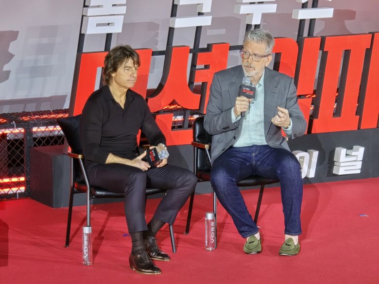 '미션 임파서블: 파이널 레코닝' 주연 배우이자 제작자인 톰 크루즈와 크리스토퍼 맥쿼리 감독, 그리고 영화의 주요 출연 배우들은 8일 오후 서울 송파구 롯데월드타워 내 롯데시네마 슈퍼플렉스관에서 열린 프레스 컨퍼런스에 참석했다.