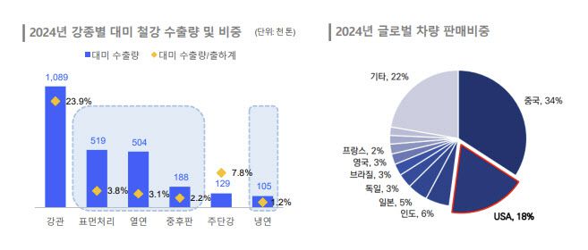 정익수 한국신용평가 기업평가본부 수석 연구원은 “포스코 자체의 미국향 매출 비중은 제한적이다. 다만 자동차, 가전 등 미국을 주요 시장으로 삼는 전방 업체들의 통상위험 전이 가능성은 있다”며 “대미 무역 상대국들의 보복 및 구제 조치에 따른 보호무역 기조 강화로 글로벌 경기 둔화, 미중 갈등으로 인한 아시아 역내 철강 수급부담 확대가 우려된다”고 했다.