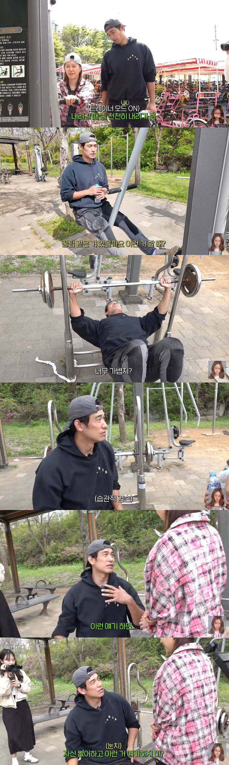 해당 영상에서 자전거 데이트를 즐긴 두 사람은 귀가 전 공원 한 켠에 위치한 야외 운동 기구로 향했다.