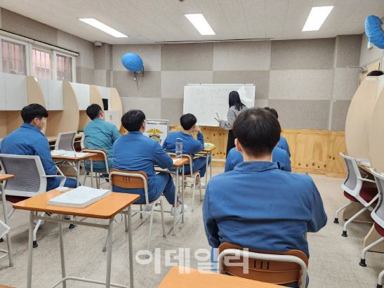 지난 2023년 11월 14일 서울 구로구 남부교도소 내 마련된 ‘만델라 소년학교’에서 소년수들이 국어 강의를 듣고 있다.(사진= 황병서 기자) |