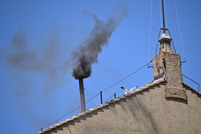 투표 종료 이후 시스티나 성당 굴뚝에서는 전날 진행된 첫 투표 때와 마찬가지로 ‘선출 불발’을 의미하는 검은 연기가 피어올랐다.