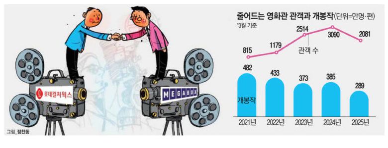 이번 '합병 빅딜' 배경은 한국 영화산업의 전례 없는 침체 때문이다. 영화계 관계자는 "이대로 가다가는 극장 산업이 완전히 무너질 수 있다는 절박함 때문에 양사 합병은 불가피하다고 보고 있다"며 "재무건전성을 높이고 출혈 경쟁을 막아야 생존이 가능하다는 긴장감이 팽배한 상황"이라고 설명했다.