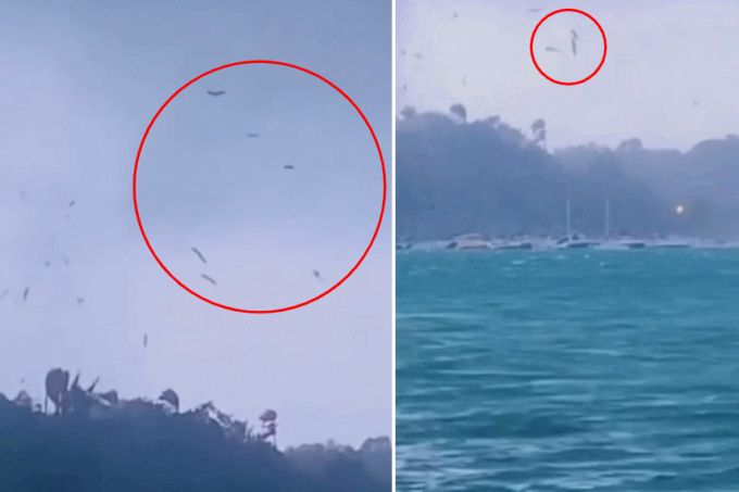 카리브해(Caribbean Sea)의 한 섬에서 물고기 떼가 하늘로 솟구치는 기현상이 발생했다. 목격자들은 기현상을 영상으로 촬영해 SNS(소셜미디어) 등에 공유했다.