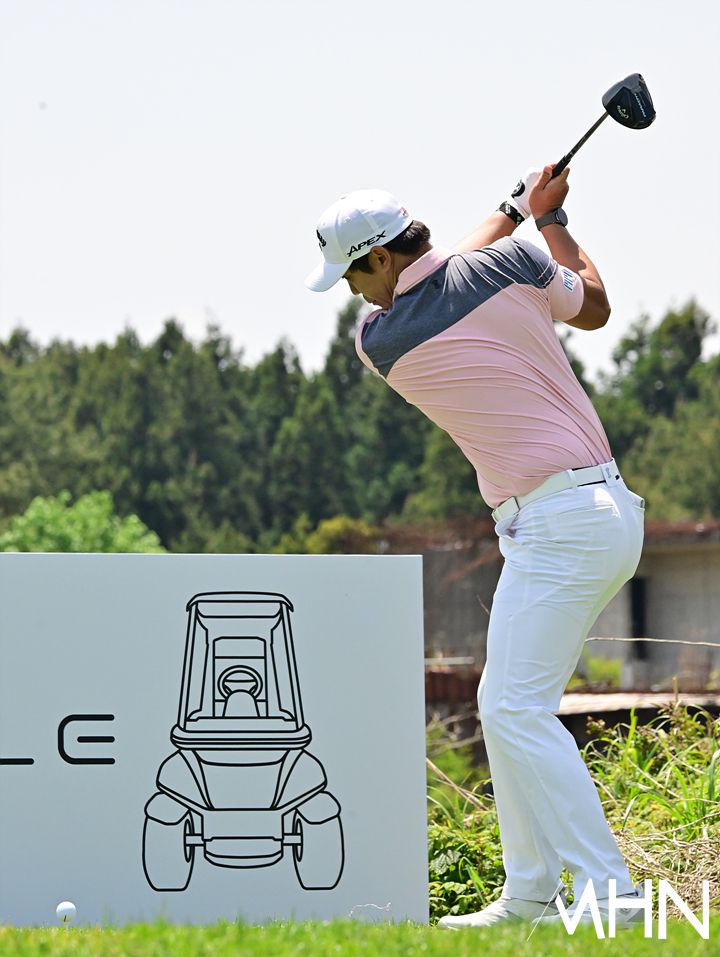 이날 이지훈이 9번 홀 티샷을 하고 있다.