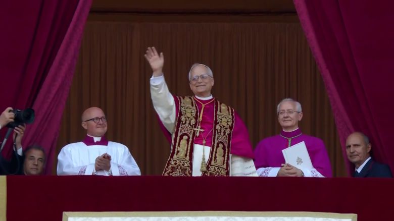 그리고 곧이어 흰색 수단을 입은 프레보스트 추기경이 발코니에 나와 손을 흔들며 환호에 화답했습니다.