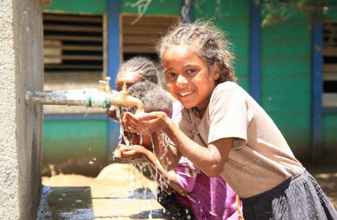 극단적인 폭염, 가뭄과 같은 기후 재난을 겪을 2020년생 아이들이 1960년생보다 5배 가까이 많아진다는 연구 결과가 나왔다. 음수대에서 물을 마시고 있는 에티오피아 아이들. 세이브더칠드런 제공 |