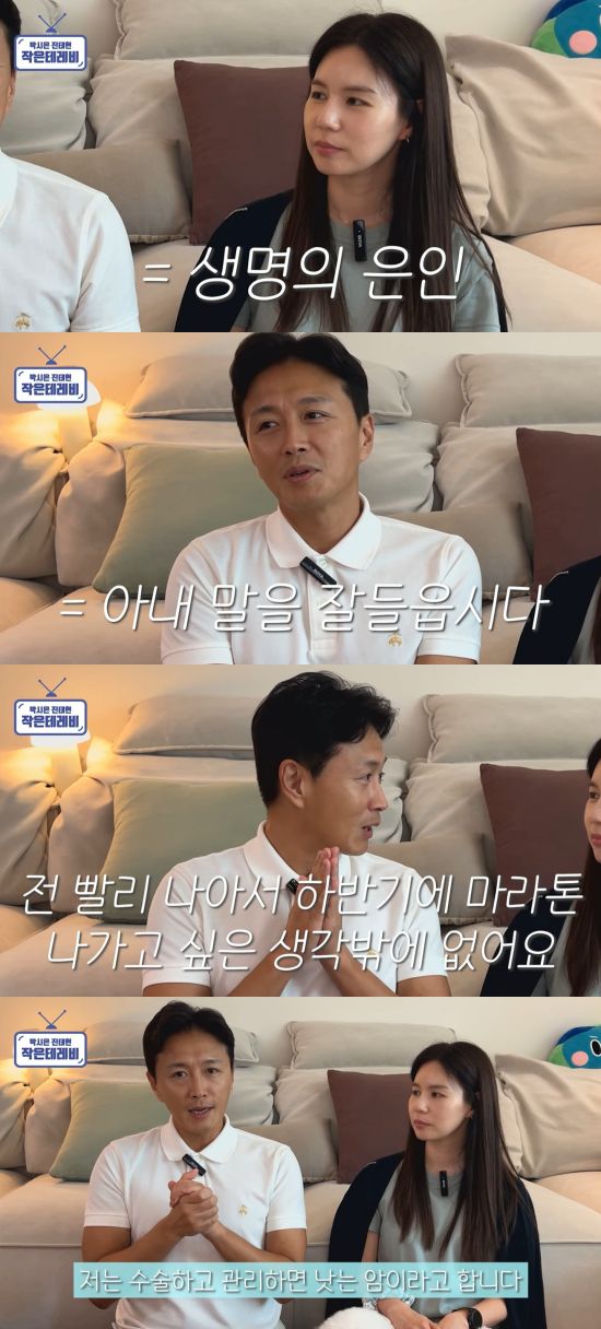 이어 "저는 항상 그렇다. 태은이가 하늘나라에 갔을 때도 그렇고 인생 44년 살아오면서 무너지는 순간이 많았다. 하지만 무너져봤자 아무 소용이 없다. 이게 착한 암이다 별거 아니라고 하는데 또 그렇게 말하면 안 된다. 전이되면 큰일난다"고 이야기했다.