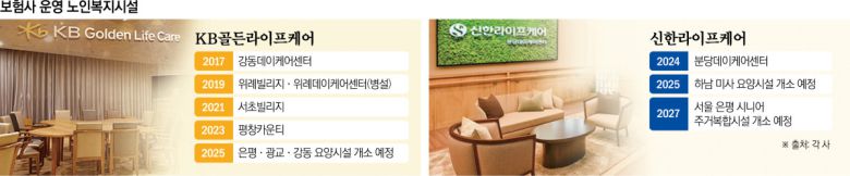8일 보험업계에 따르면 생명보험사들 중 시니어 사업에 가장 먼저 뛰어든 KB라이프의 자회사 KB골든라이프케어는 올해 은평, 광교, 강동 지역에 요양시설을 개소한다. 강동 요양시설은 입소 신청 접수를 시작했다.