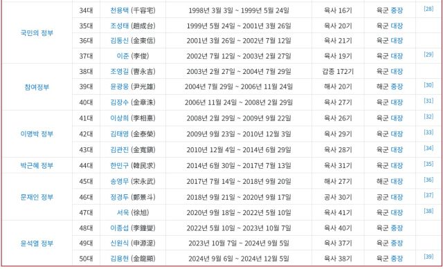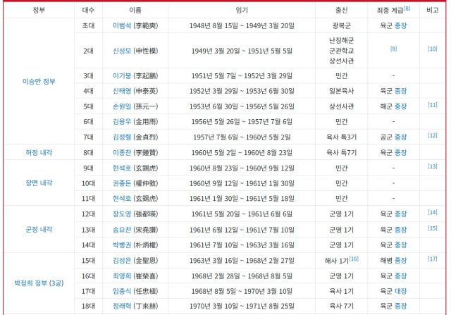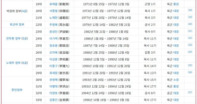 역대 대한민국 국방부 장관 50명의 출신을 자세히 살펴 봤다.
