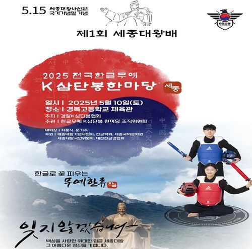 이번 행사는 오는 15일 '제628돌 세종대왕 나신 날'을 기념해 세종의 업적과 정신을 기리기 위해 마련됐으며, 한글 모양을 활용해 만든 무술 겨루기와 한글 품새 경기가 진행된다. 개막식은 한글검 퍼포먼스, 한글권 시범, K삼단봉 시범단 공연이 이어져 행사 열기를 더할 예정이다.