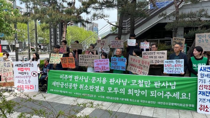 새만금신공항 백지화 공동행동(공동행동)은 지난 8일 서울행정법원 앞에서 기자회견을 열고, "새만금신공항은 거짓과 기만으로 시작된 잘못된 국책사업"이라며 재판부가 새만금신공항 기본계획에 대한 취소 판결을 내릴 것을 촉구했다.
