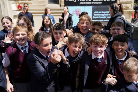 미국 출신 레오 14세(로버트 프랜시스 프레보스트 추기경)가 교황으로 선출된 8일(현지시간) 그의 고향인 일리노이주 시카고의 '거룩한 이름 대성당'(Holy Name Cathedral)으로 현장학습을 나온 학생들이 환호하고 있다. 로이터=연합뉴스 |