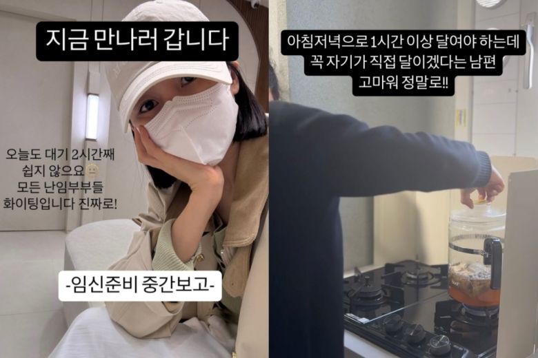 초아는 임신을 위해 애쓰고 있는 상황도 공개했다. 함께 공개한 사진에는 남편이 초아를 위해 약을 달이는 모습이 담겼다. 또다른 사진 속 초아는 모자와 마스크를 쓴 채 청순한 매력을 뽐내기도 했다.