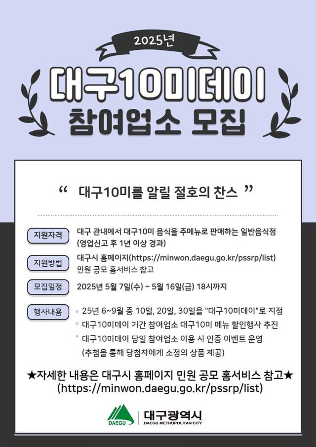대구10미데이 참여업소 모집 포스터. 대구시 제공 |
