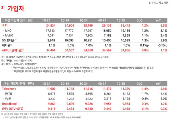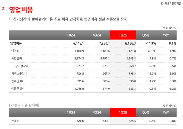 KT는 한국채택국제회계기준(K-IFRS) 연결기준 2025년 1분기 매출액과 영업이익을 각각 6조8451억원과 6888억원으로 집계했다고 9일 밝혔다.