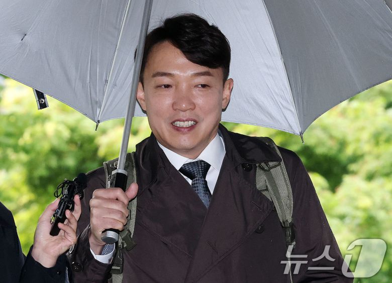 '딸 위장전입·리조트 접대 의혹' 혐의를 받고 있는 이정섭 검사가 9일 오전 서초구 서울중앙지방법원에서 열린 형사사법절차전자화촉진법위반 등 공판에 출석하고 있다. 2025.5.9/뉴스1 ⓒ News1 박세연 기자
