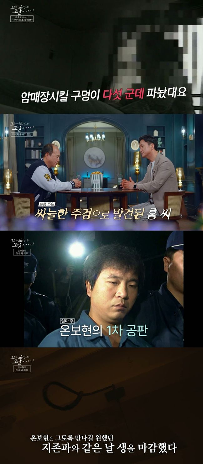 홍씨 납치 전에는 40대 여성 김씨를 납치해 성폭행했는데, 미리 김제의 한 야산에 구덩이를 파놓고 암매장을 하려는 계획까지 세웠다. 결국 김씨가 가까스로 탈출하면서 온보현의 계획은 실패했다. 이에 장도연은 “영화에 나올 법하다”, 김광규는 “미친X이네, 진짜”라고 입을 다물지 못했다.