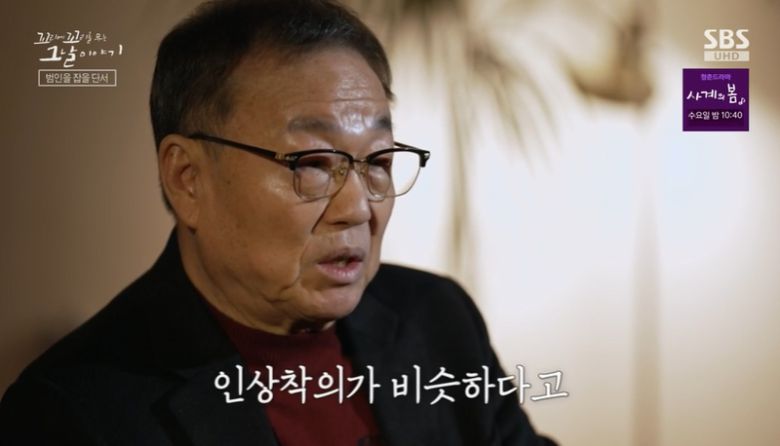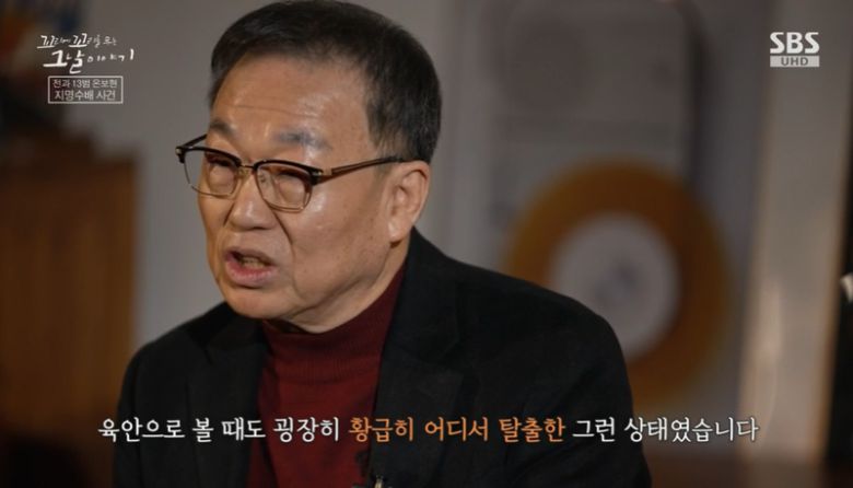 "처음에 들을 때는 사실상 뭐 믿기지도 않고, 더군다나 지존파 사건을 하고 있는 판에 그런 황당한 얘기를 하면서 자수를 하니까 믿을 수가 없는 상황인데. 그러면 어떠한 본인이 가지고 있는 증거 자료나 그 상황을 얘기하다 보니까. '아 이건 범행인 것이 맞구나'…"