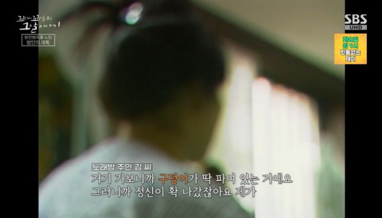 "전국에다가 암매장시킬 구덩이 다섯 군데 파놨대요. (제가) 처음이 아니라 엄청 많이 했대요 자기 말로. 엄청 많이 해서 완전범죄를 위해서 구덩이를 파서 많이 했대요. 그게 완전범죄라고."