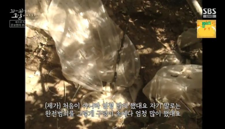"거기 가보니 구덩이가 딱 파여 있는 거예요. 사람이 행방불명되는 거 알지 않느냐고, 그게 다 암매장시켜서 없어지는 거래요. 그러니까 완전하게 범죄를 하기 위해서는 암매장을 시킨대요. 근데 영원히 여기서 내가 잠들 자리라고 그러더라고요 여기서."