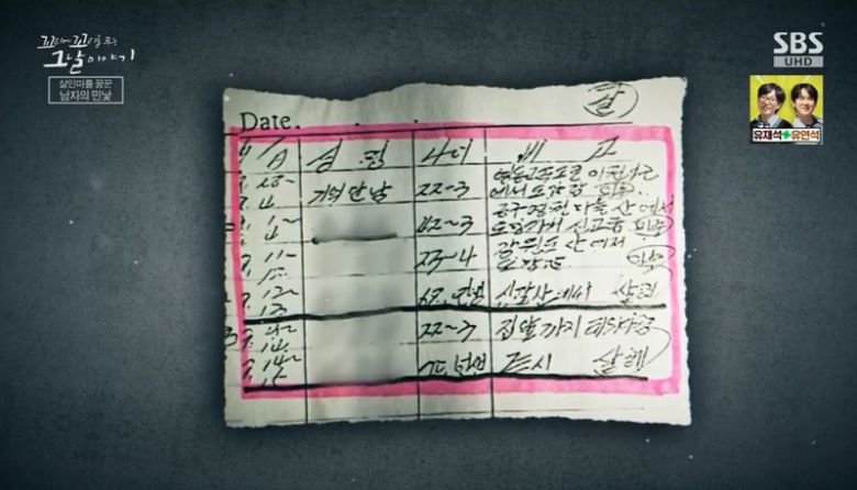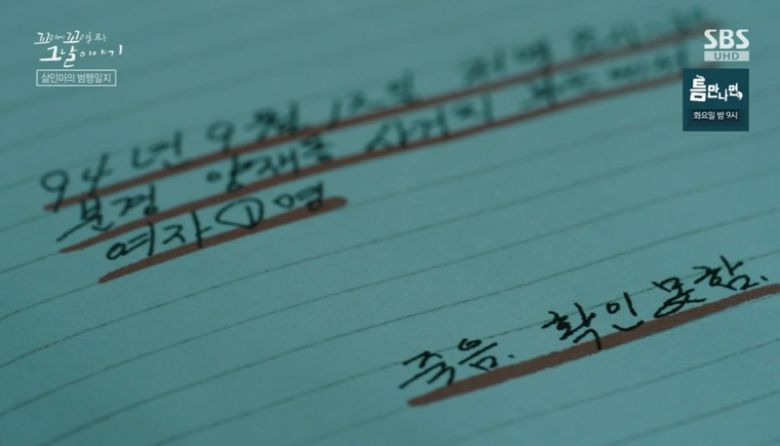 이렇게 말도 안 되는 이유로 온보현은 불과 보름 만에 총 6건의 범행을 저질렀어. 두 건의 살인을 포함해 납치, 강도강간, 사체유기 등 혐의도 아주 다양해. 근데 그의 수첩을 보면, 피해자를 대하는 게 달라.