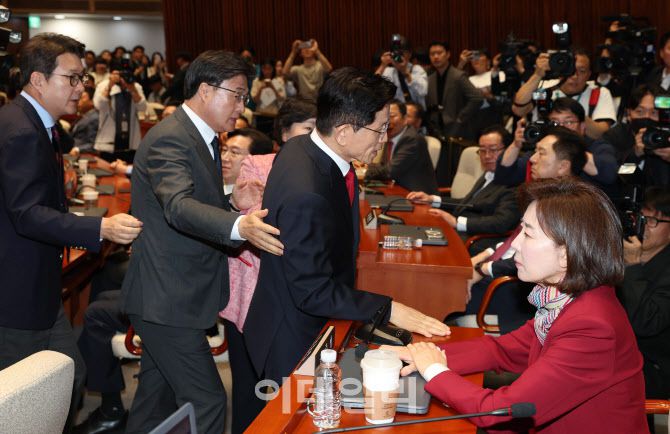 [포토]김문수, '의원총회 퇴장...만류하는 의원들'