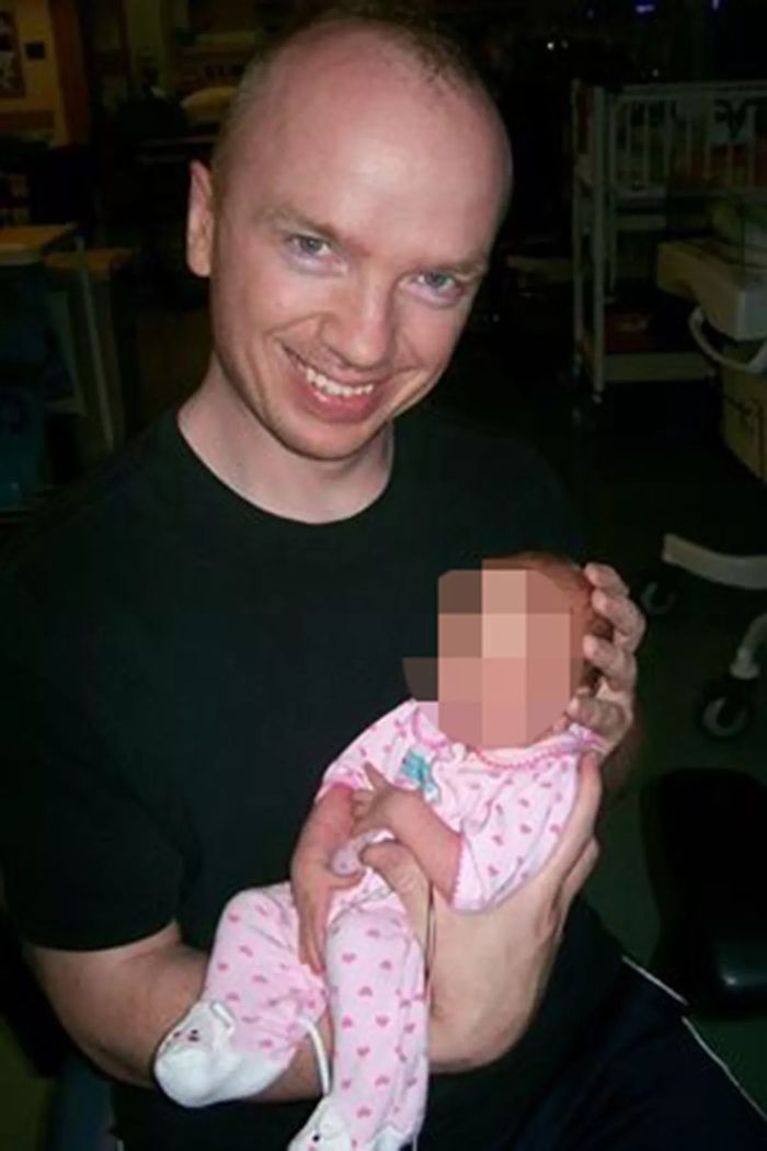 로버트 찰스 앨본이 아기를 안고 있다. [사진 = 미러]