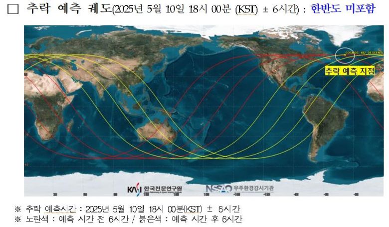 최민수 우주청 우주위험대응과장은 “최종 추락 시점까지 궤도 변화를 지속적으로 감시할 계획”이라고 밝혔다.