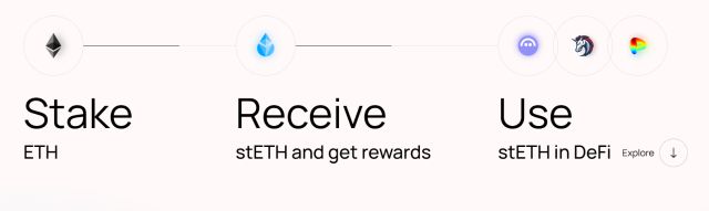 사용자는 복잡한 검증자 노드를 직접 운영하거나 자산을 장기간 락업하지 않고도 스테이킹 수익을 얻을 수 있다. 예를 들어 1ETH를 리도에 예치하면 1stETH를 발행받는 식이다. stETH는 유동성 토큰으로, 보유자는 이를 통해 스테이킹 보상을 받으면서도 다양한 디파이 프로토콜에서 자유롭게 활용할 수 있다. stETH를 담보로 대출을 받거나, 유동성 공급 등에 활용할 수 있다. 리도는 사용자의 스테이킹 수익 가운데 10%를 수수료로 떼고, 나머지 90%를 사용자에게 돌려준다. 언스테이킹을 원할 경우 사용자는 stETH를 소각하고, 네트워크에서 출금 절차를 거쳐 예치했던 ETH와 쌓인 보상을 돌려받을 수 있다.