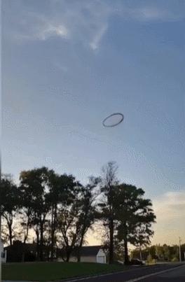 7일(이하 현지시간) 미 폭스웨더에 따르면, 캔자스주 보너 스프링스 주민 프랭키 캠렌은 5일 오후 오토바이를 타고 가던 중 하늘에 크고 검은 고리가 형성되는 모습을 발견하고 이를 촬영했다. 하늘에 떠 있는 검은 고리는 처음엔 굵고 선명하다가 점차 가늘어졌다.