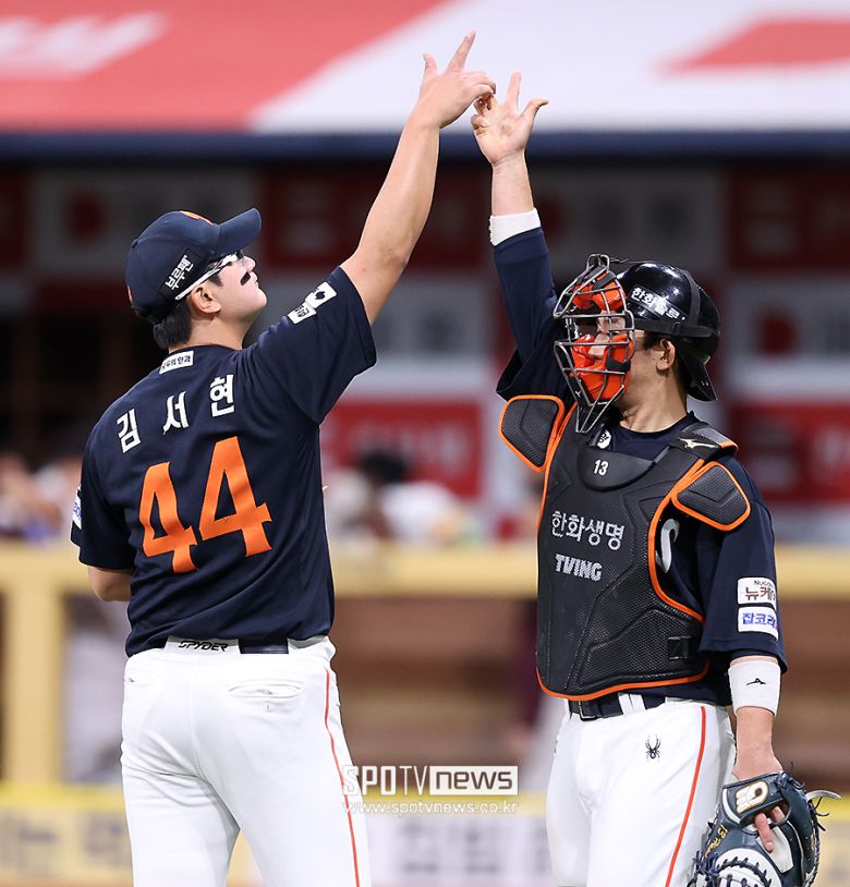 [스포티비뉴스=고척, 곽혜미 기자] 2025 신한 SOL Bank KBO리그 키움 히어로즈와 한화 이글스의 경기가 9일 오후 서울 구로구 고척스카이돔에서 열렸다. 7-5로 승리하며 10연승을 한 한화 김서현, 최재훈이 세리머니를 하고 있다. <저작권자 ⓒ SPOTV NEWS. 무단전재 및 재배포 금지>이 기사의 카테고리는 언론사의 분류를 따릅니다.0공유하기