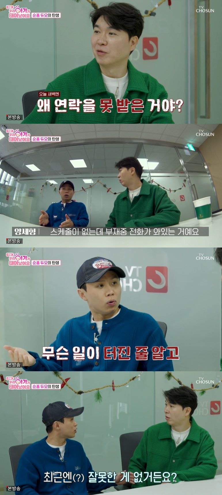 이에 양세형은 "스케줄이 없는데 아침에 부재중 전화 몇 통이 와있더라. 아무리 생각해도 최근엔 잘못한 게 없다. 요즘 잘 살았고, 조심히 살았고, 사람도 안 만났다"며 당황했던 심정을 고백해 웃음을 자아냈다.