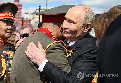 붉은광장에서 전승절 열병식 후 북한군 장성과 포옹하는 블라디미르 푸틴 러시아 대통령 |