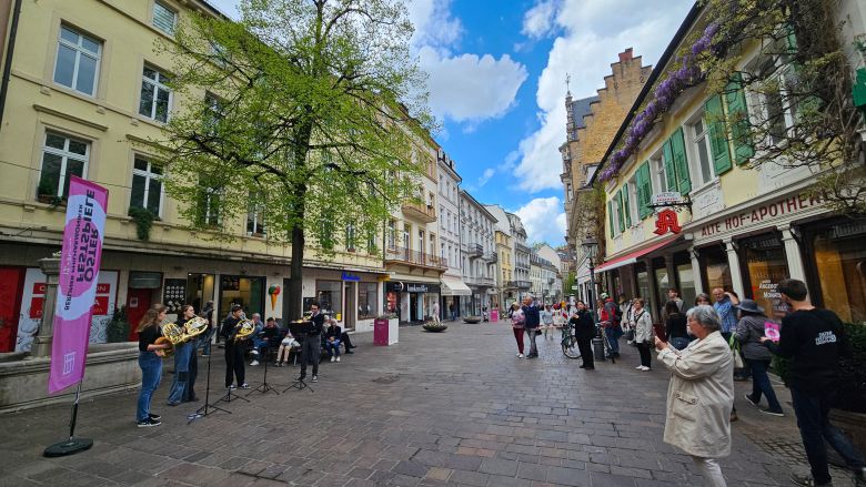 지난 4월12~21일 바덴바덴에서 열린 부활절페스티벌 일환으로 청소년 오케스트라가 도심에서 야외 공연을 펼치고 있다. 베를린필은 10일간 '나비 부인'과 베토벤 교향곡 '합창' 등 오페라와 관현악 연주를 8차례 가졌다./김기철 기자 |
