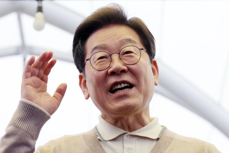 민심을 청취하는 ‘경청 투어’에 나선 이재명 더불어민주당 대선후보가 9일 경북 성주군 성주전통시장에서 즉흥 연설을 하고 있다. 2025.05.09.뉴시스 |